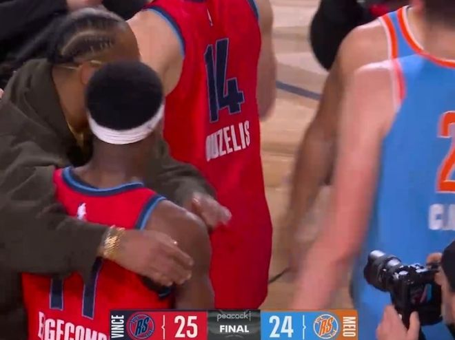至于在決賽當(dāng)中,卡特隊(duì)25-24逆轉(zhuǎn)絕殺安東尼隊(duì)。埃奇庫(kù)姆首發(fā)登場(chǎng)8分45秒,貢獻(xiàn)5中2的表現(xiàn),其中外線三分3中0,但最后時(shí)刻關(guān)鍵兩罰全中絕殺,得到6分2籃板1搶斷的數(shù)據(jù)。