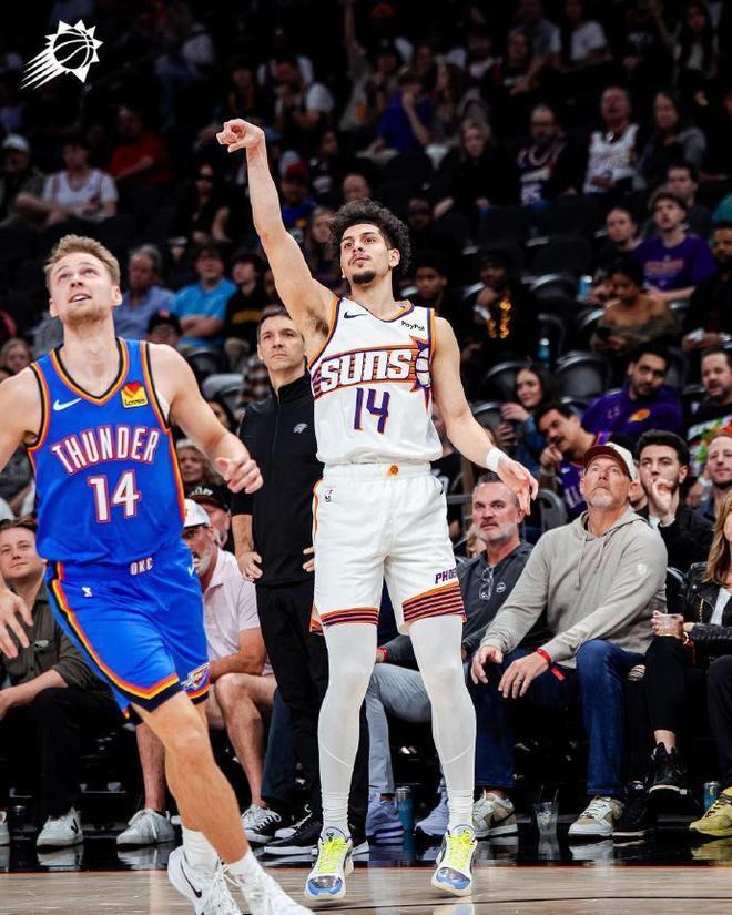 雷霆上一場客場119-110戰(zhàn)勝湖人,太陽上一場主場120-111戰(zhàn)勝獨(dú)行俠,賽季前三次交鋒雷霆2勝1負(fù)處于上風(fēng)。本場雷霆缺少亞歷山大與米切爾,太陽缺少阿倫、布克、格林。面對缺少雙核的殘陣太陽對決,雷霆也缺少亞歷山大,但依然是占據(jù)絕對實(shí)力優(yōu)勢。首節(jié)前5分鐘雷霆僅16-14領(lǐng)先,但雷霆逐步擴(kuò)大23-18領(lǐng)先,太陽追到差3分。雷霆一波14-5攻勢碾壓太陽擴(kuò)大兩位數(shù)領(lǐng)先優(yōu)勢,首節(jié)比賽結(jié)束雷霆37-25領(lǐng)先太陽12分。